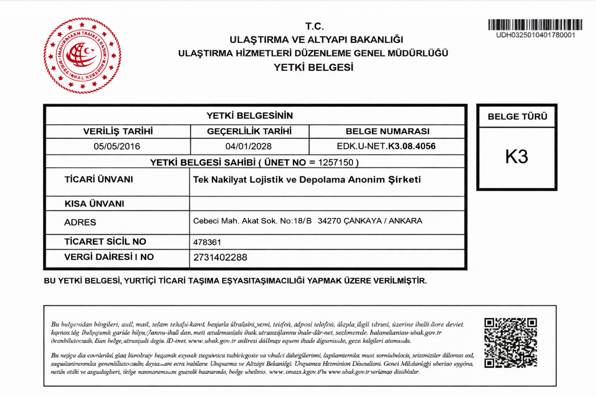 Firmamızın tüm faaliyetleri, ilgili mevzuat ve yasal düzenlemelere uygun olarak yürütülmektedir. Kurumsal faaliyet belgeleri, resmi evraklar ve sertifikalarımız.